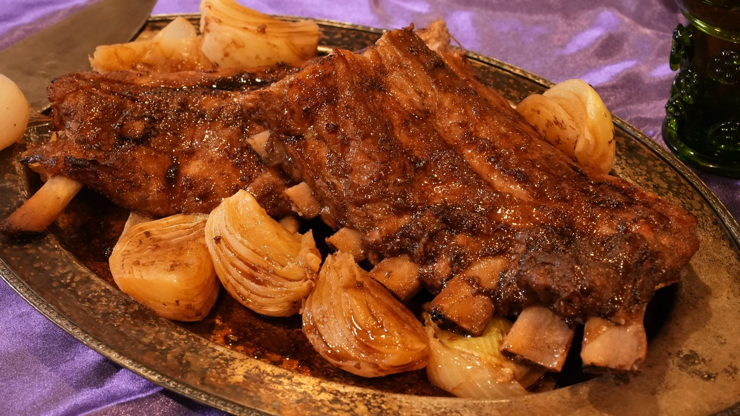 Wonderful baby back ribs marinated with ground coriander and sapa and roasted over onions